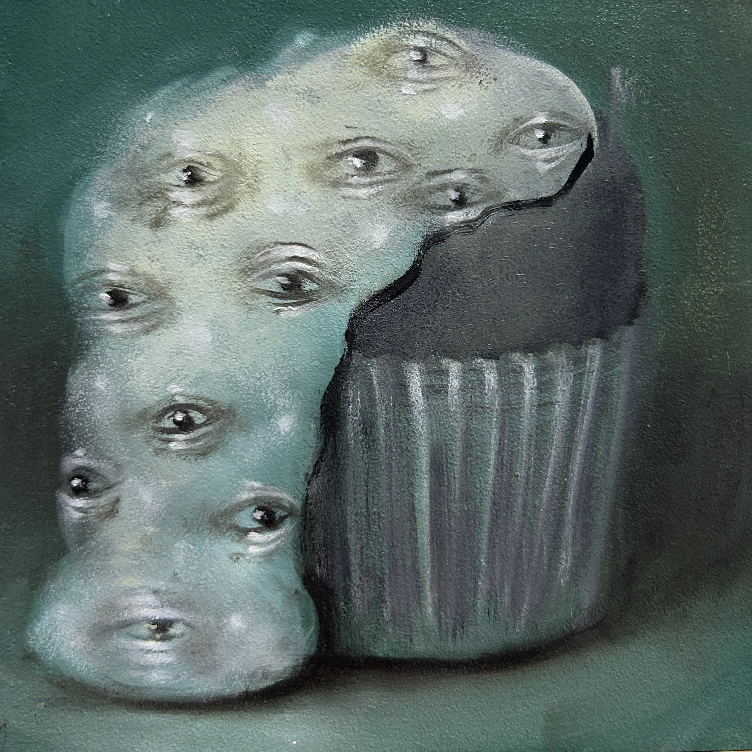 Weeping Cupcake, 2025, oil on panel, 4 x 4 inches