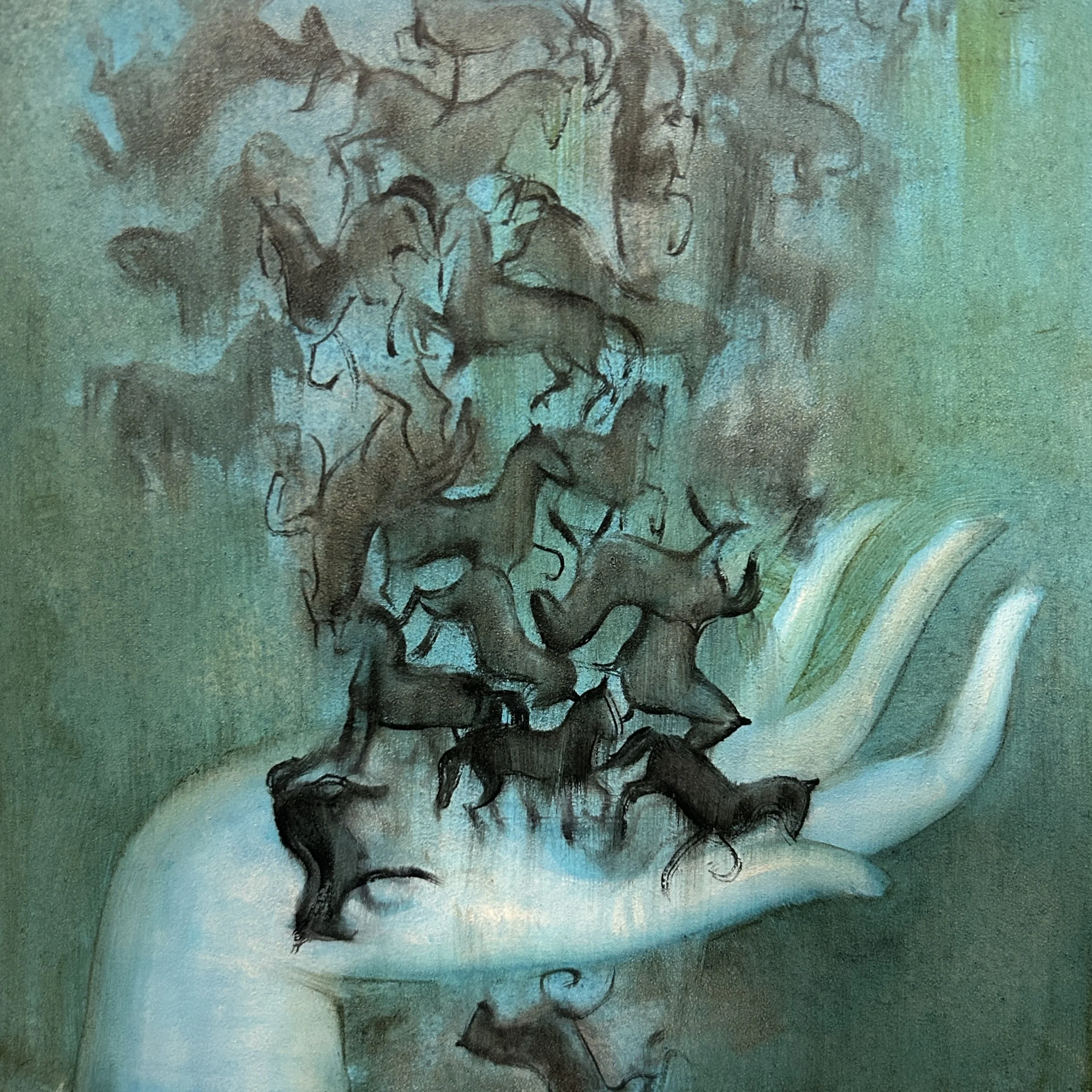 Lilliputian Horses, 2025, oil on panel, 6 x 6 inches