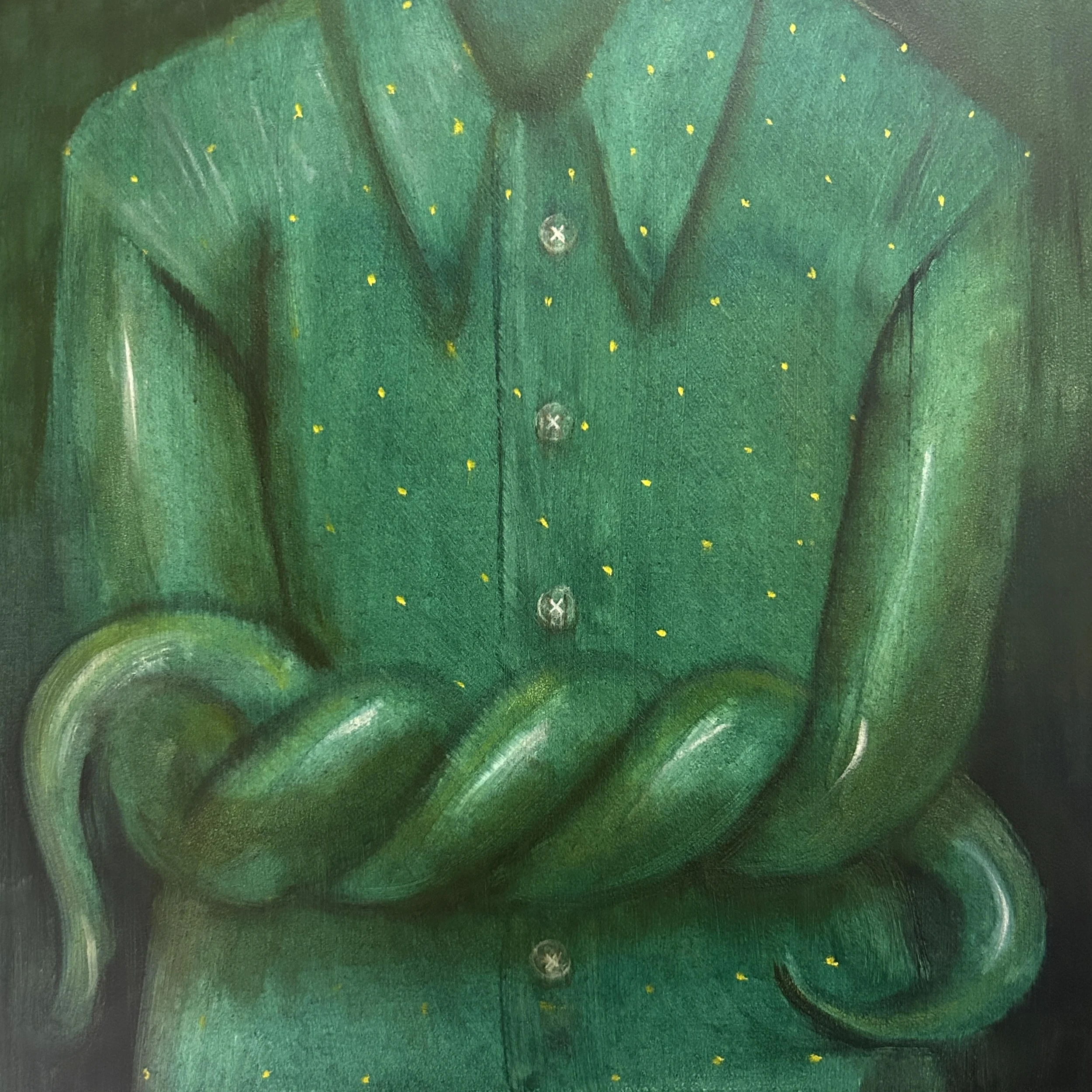 Medusa Arms, 2025, oil on panel, 8 x 8 inches