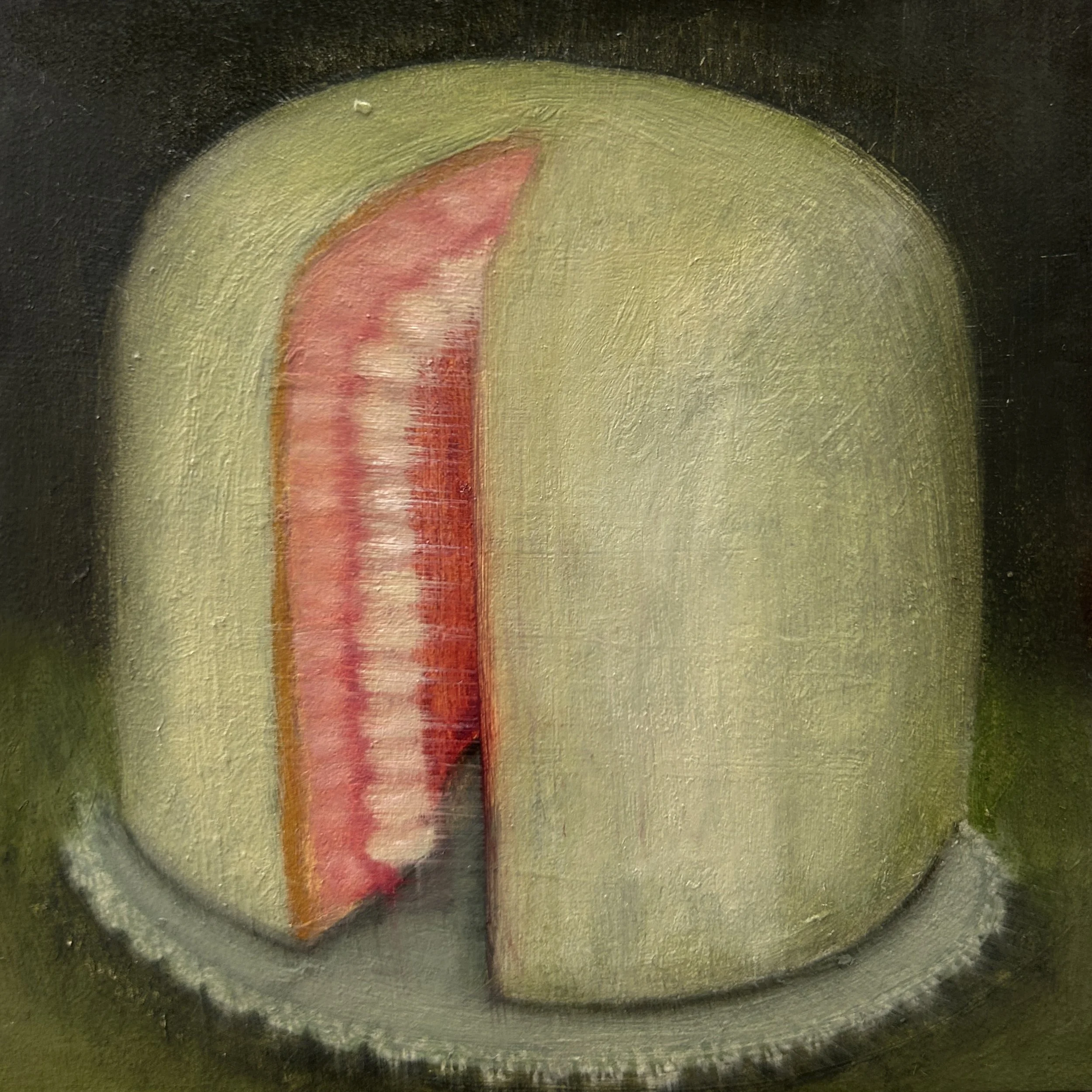 Tooth Cake, 2025, oil on panel, 4 x 4 inches